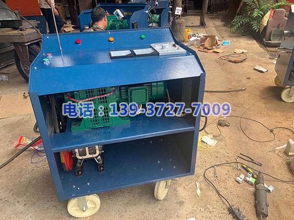 二、主機應放在平坦的位置,將水輪轉換器的一-端與主機動力軸端口對接、另-端先套上密封圈后再與清洗軟軸連接,伸展清洗軟軸,在清洗端裝上鉆頭,將高壓水管出水口按上密封圈后,與水輪轉換器高壓接頭連接;